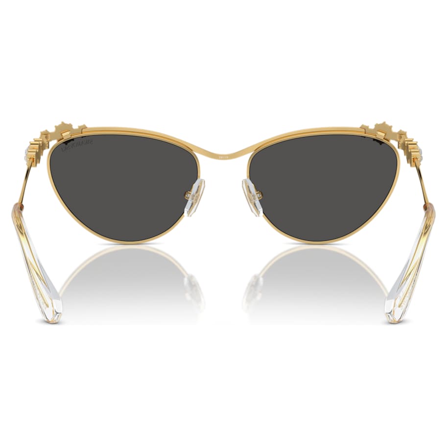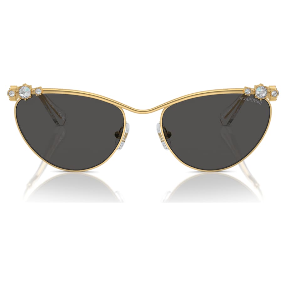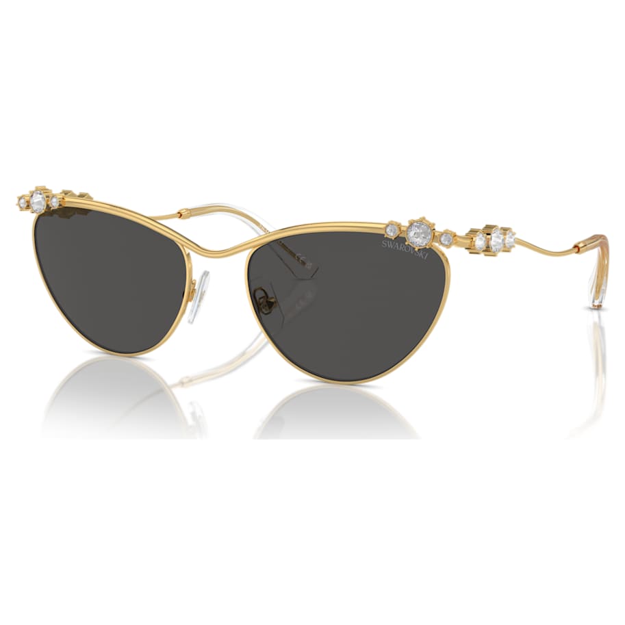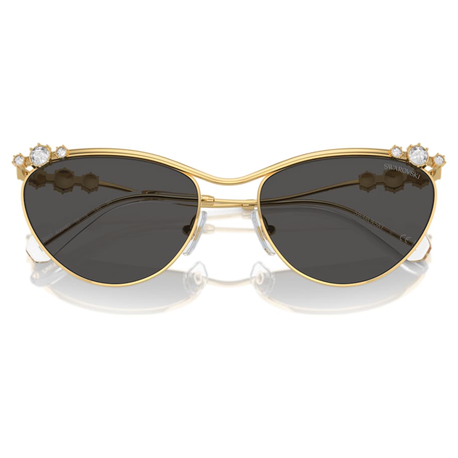 These eye-catching sunglasses are inspired by Swarovski’s Constella family and combine classic elegance with extraordinary shine. Prong-set clear crystals in a variety of sizes adorn curved gold-tone metal temples, while the dark gray lenses are placed in a full-rim frame. A striking way to add extra glamour to your everyday look.