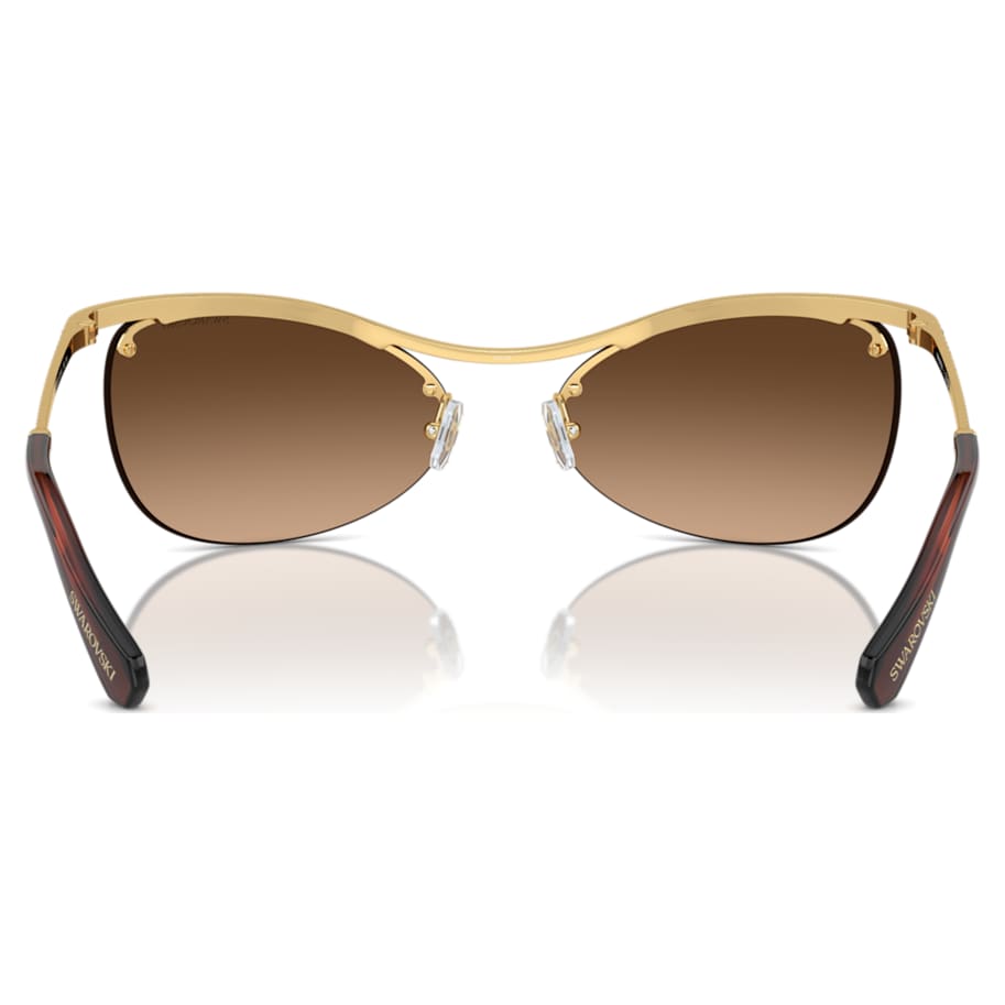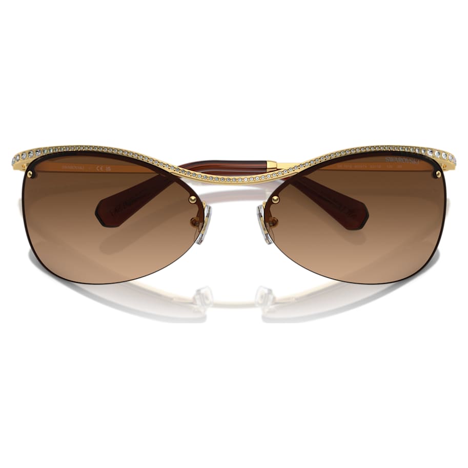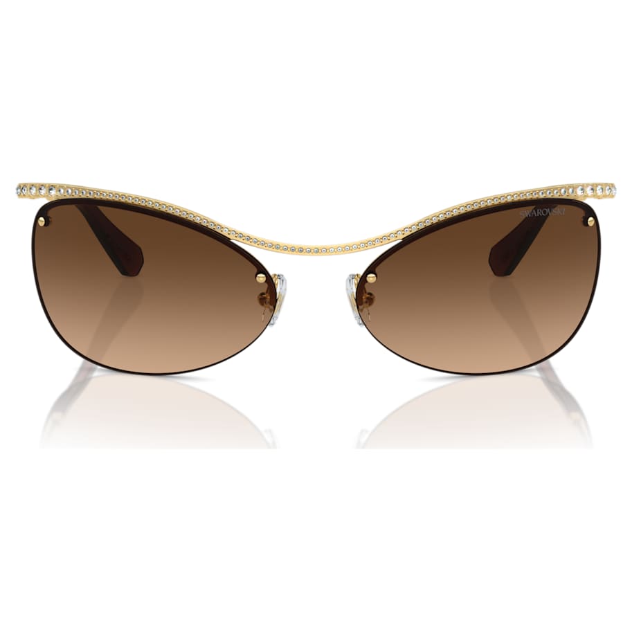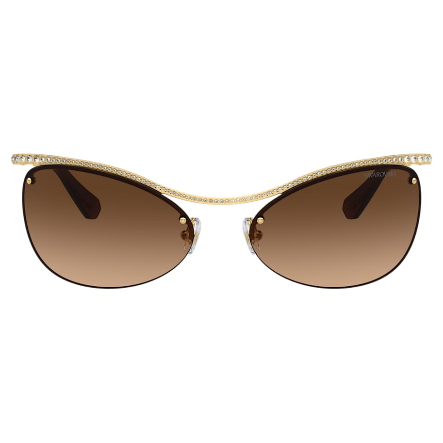 These Matrix-inspired sunglasses are an effortless way to modernize your style. The distinctive shape is crafted from gold-tone frames and floating brown gradient lenses, while the temples and brow bar are fully adorned with a variety of clear round crystals. A radiant everyday choice that will shimmer in the sun.