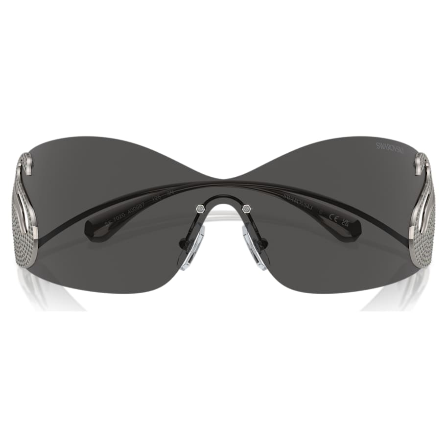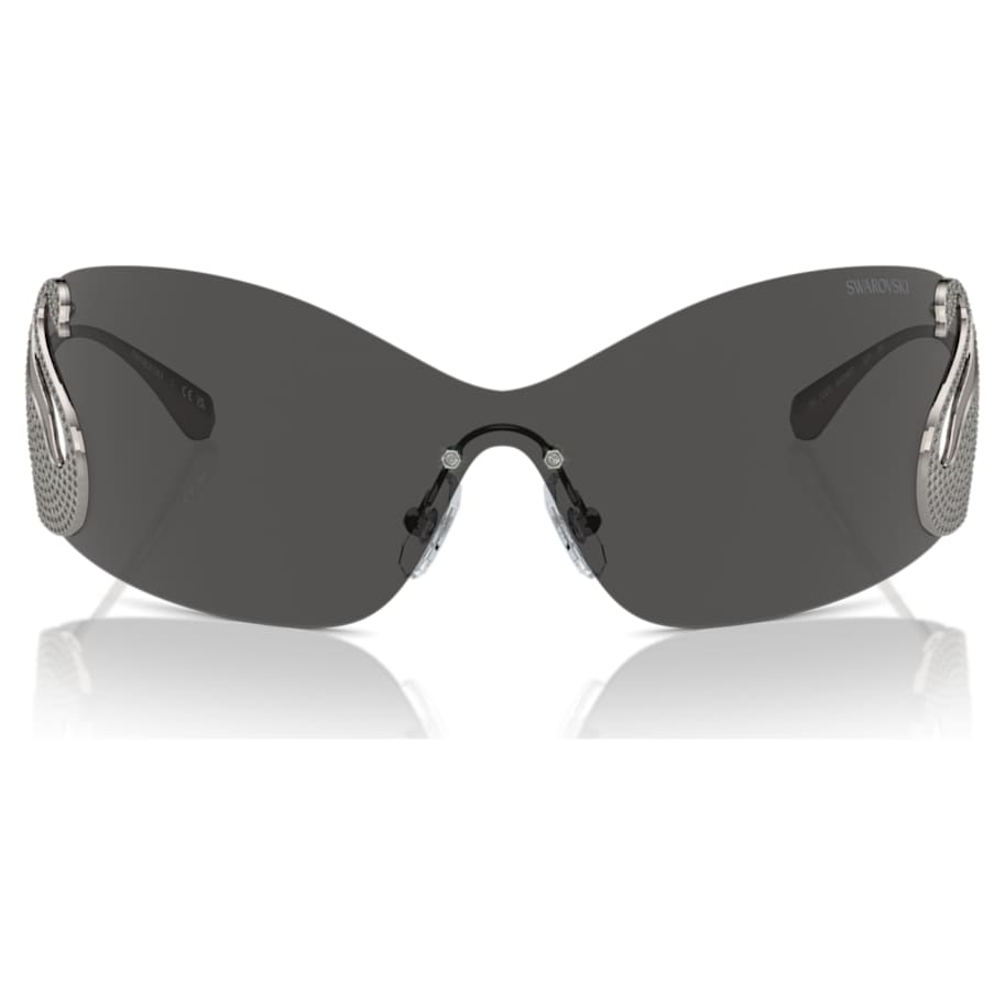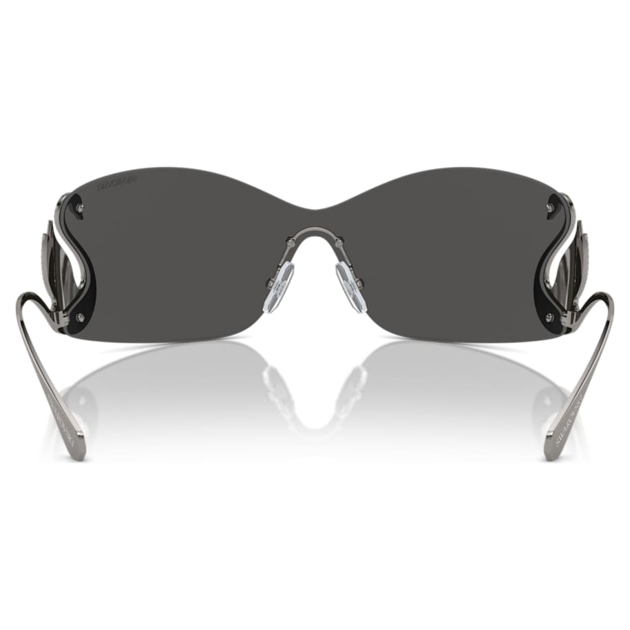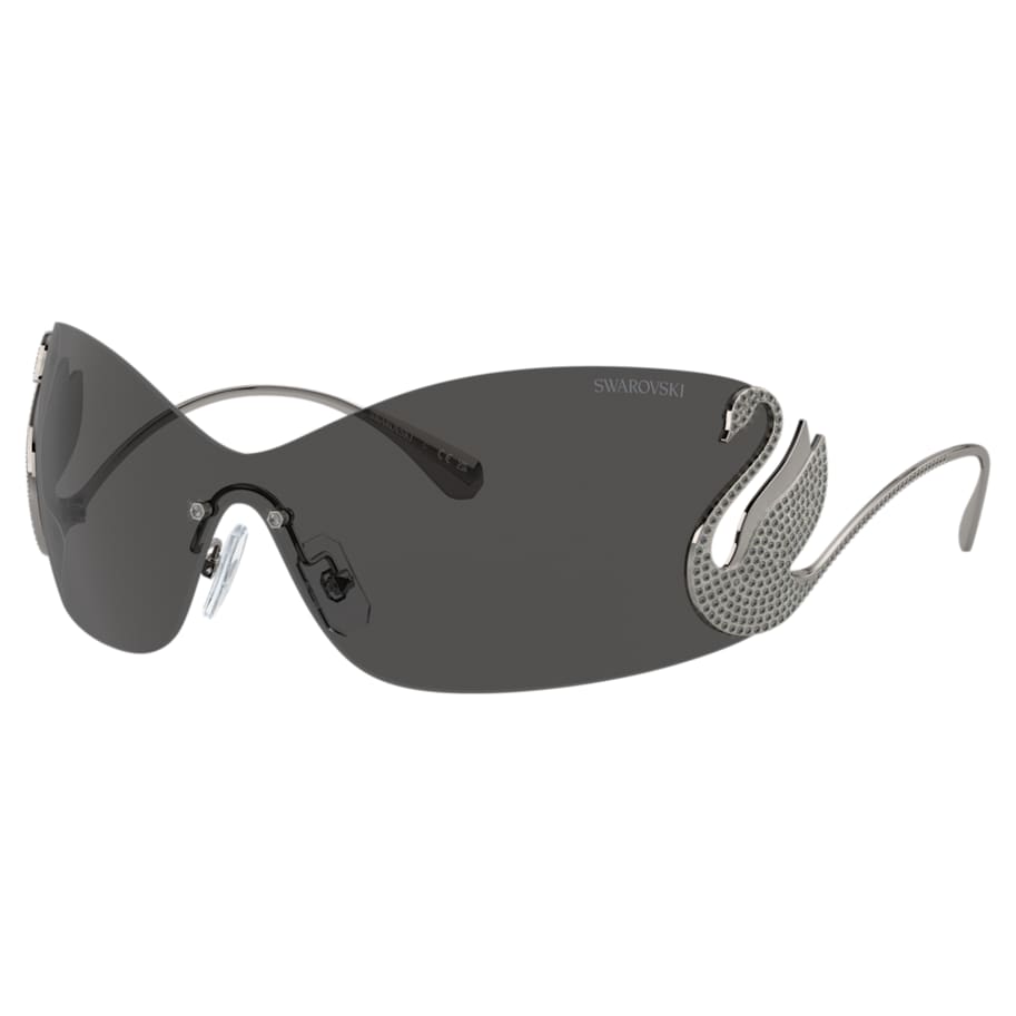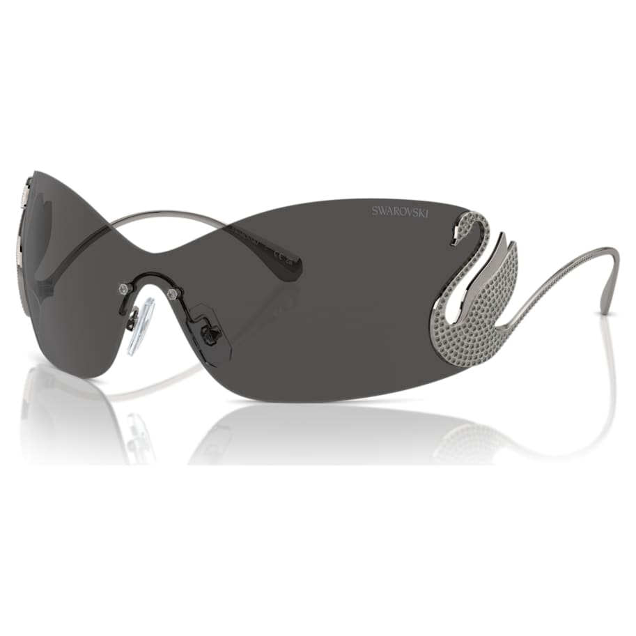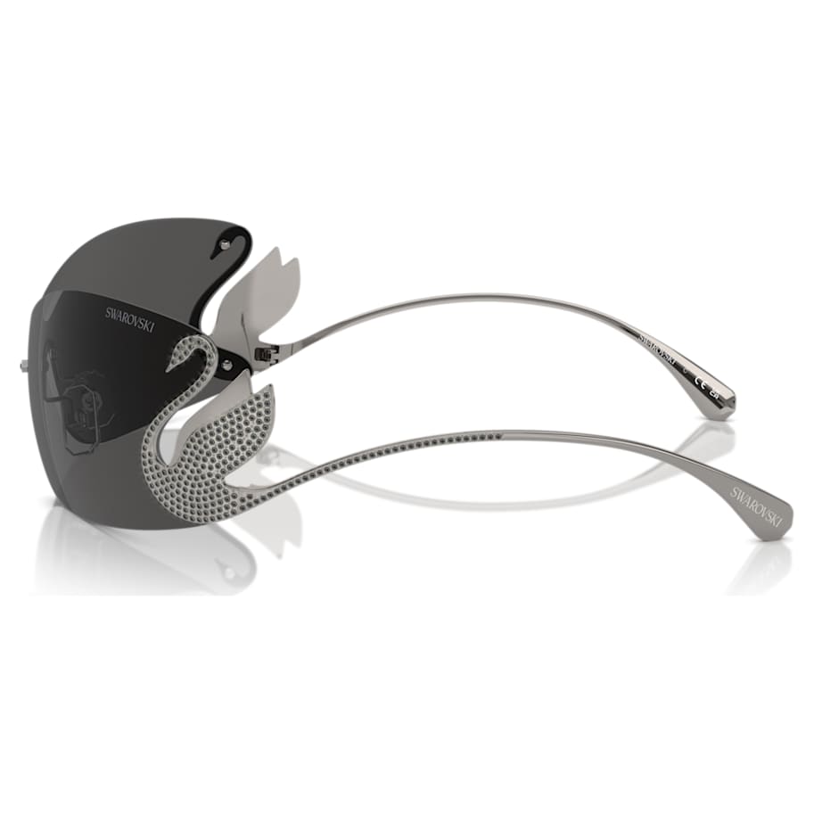 These signature Swarovski sunglasses are inspired by the iconic swan – representing love, joy, and eternal beauty. The extraordinary design features gray lenses in a mask shape, along with a gunmetal swan silhouette on each temple, elegantly curved and embellished with a snowflake pavé of black crystals. A graceful way to celebrate Swarovski’s most famous emblem.