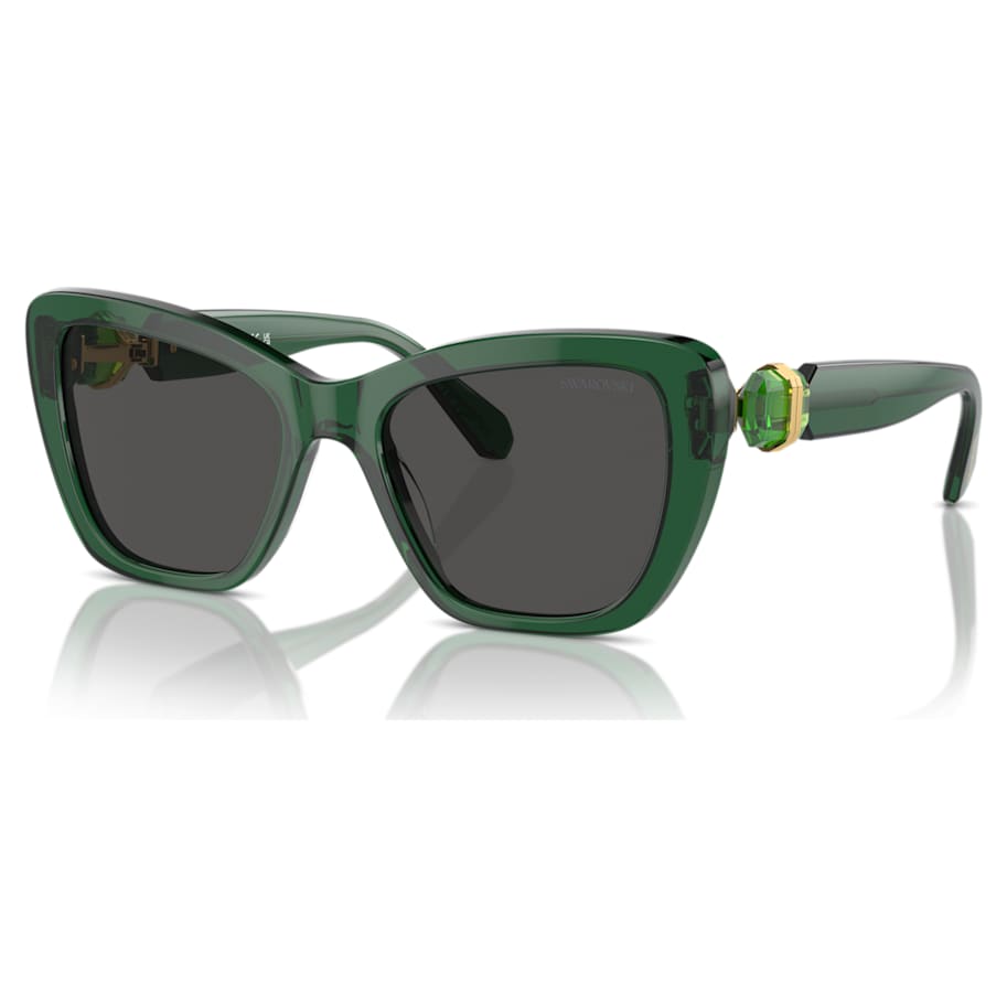 Inspired by our bold Lucent family, these square sunglasses epitomize statement chic. The frames are crafted from green acetate, featuring gray lenses and hinged octagon-cut green crystals on each temple. Gold-tone accents around the stones amplify the luxury. Add this classic look to your wardrobe and face the day in style.
