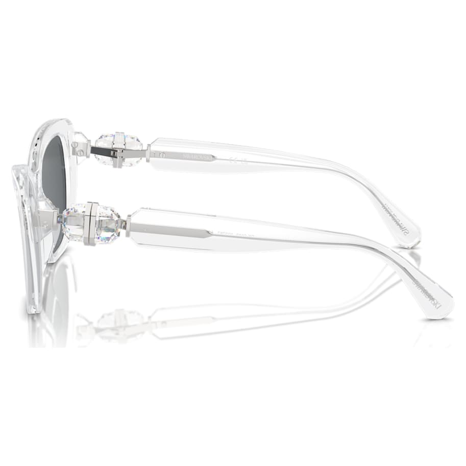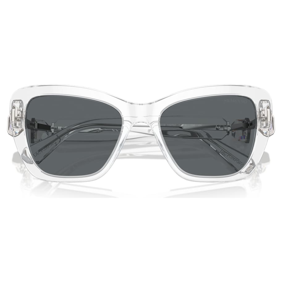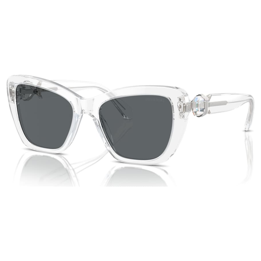 Inspired by our bold Lucent family, these square sunglasses epitomize statement chic. The frames are crafted from transparent acetate, featuring gray lenses and hinged octagon-cut clear crystals on each temple. Light metallic accents around the stones amplify the luxury. Add this classic look to your wardrobe and face the day in style.