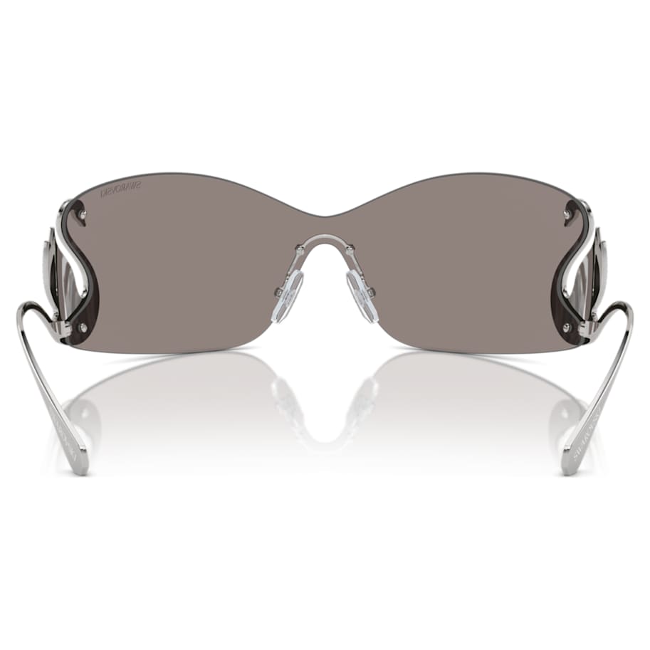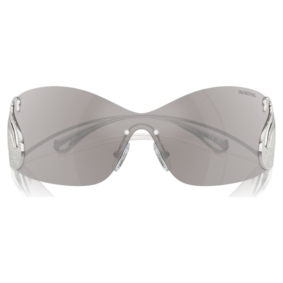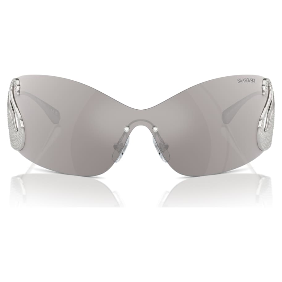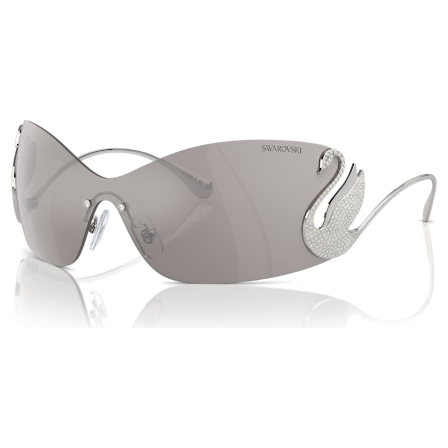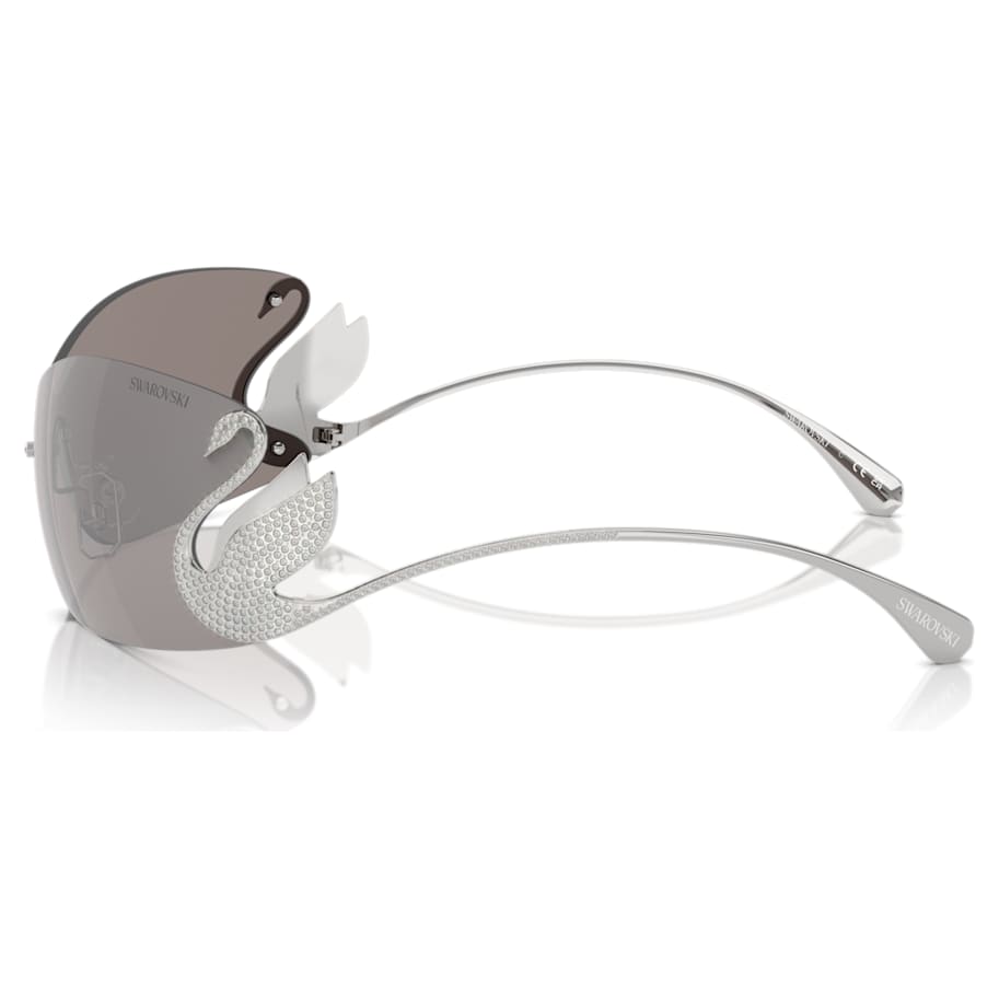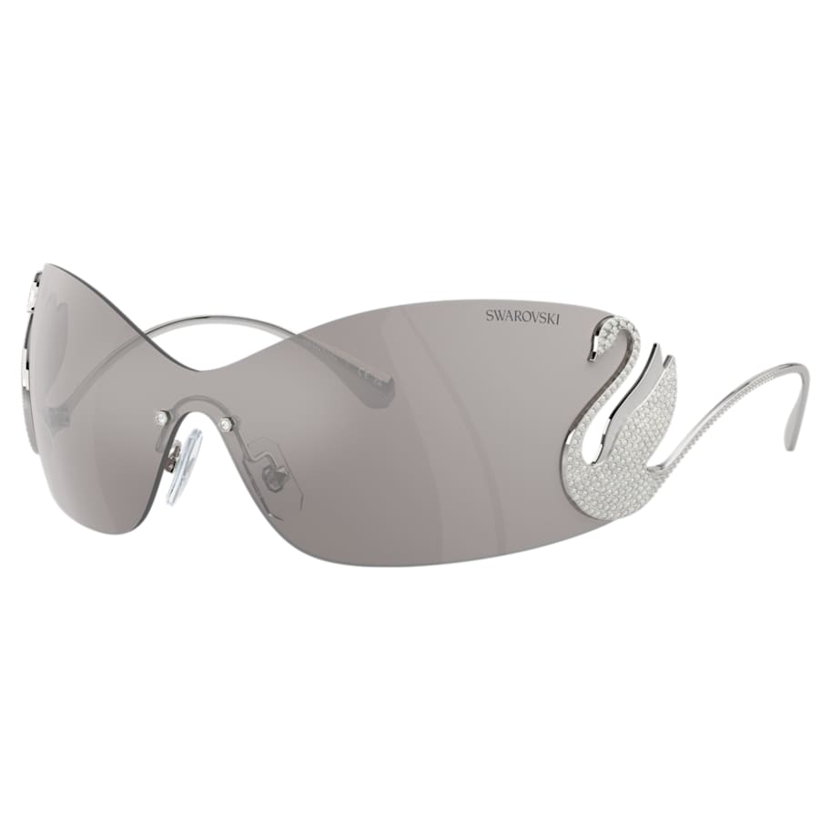 These signature Swarovski sunglasses are inspired by the iconic swan – representing love, joy, and eternal beauty. The extraordinary design features silver mirrored lenses in a mask shape, along with a silver-tone swan silhouette on each temple, elegantly curved and embellished with a snowflake pavé of clear crystals. A graceful way to celebrate Swarovski’s most famous emblem.