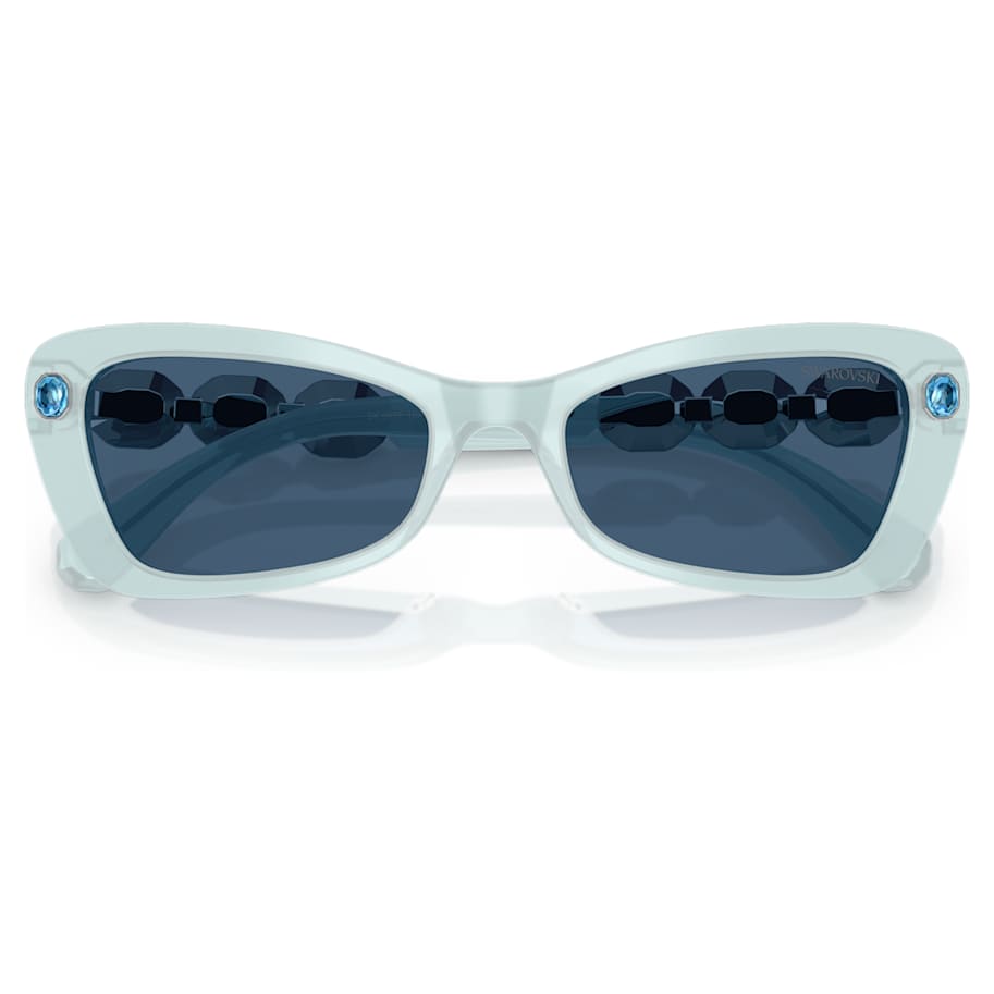 Dial up the color in your everyday style with these beautifully bright sunglasses. Inspired by our iconic Millenia family, the narrow butterfly frames are crafted from light blue acetate and feature matching solid blue lenses. On each temple, three exclusive crystals are placed within a refined metallic bezel setting to form Swarovski’s signature octagon shape. Wear this pair to radiate joy, come rain or shine.