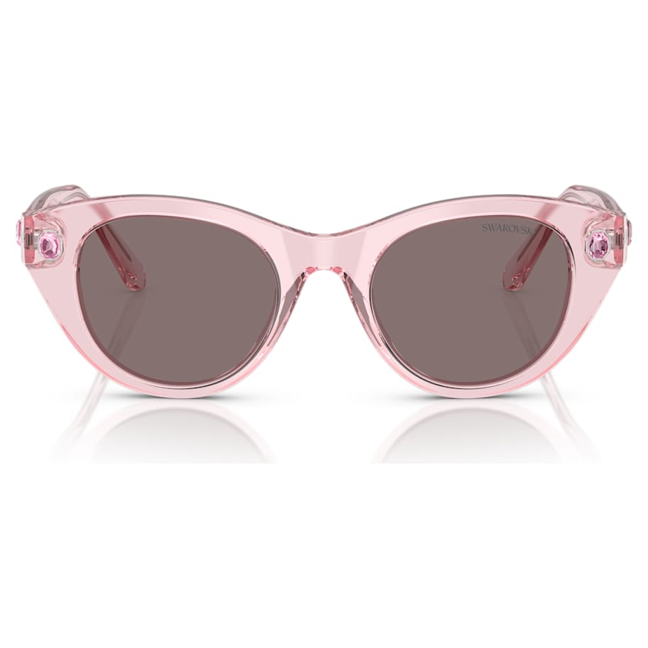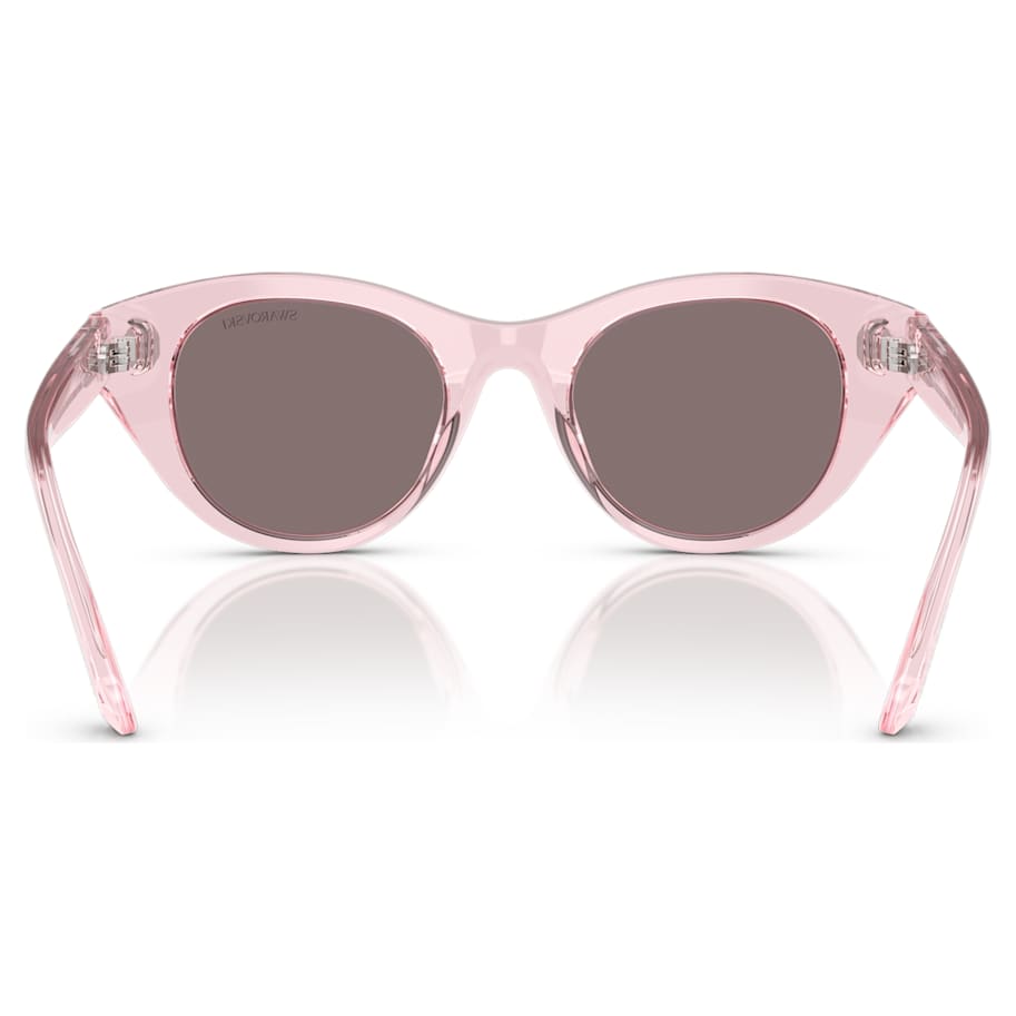 These playful Swarovski sunglasses radiate retro chic. Inspired by our iconic Millenia family, the round frames are crafted from transparent pink acetate with solid pink lenses. For an extra pop of color, four mini crystals are arranged on the front and on each temple, presented in a light pink shade and Swarovski’s identifiable octagon shape. A fun and functional display of joyful extravagance.