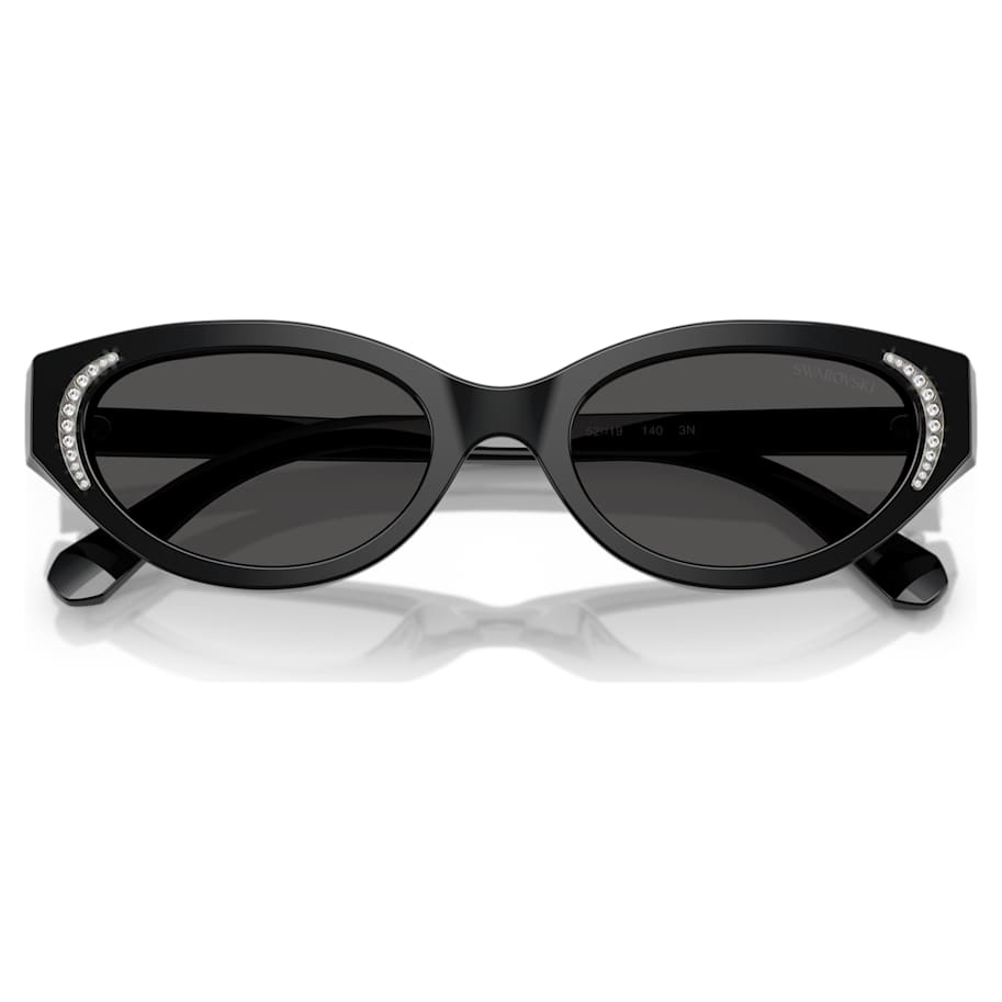 Light-filled luxury permeates this striking pair of sunglasses. Inspired by the Sublima family, the oval frames with a cat-eye edge are crafted from black acetate with matching dark gray lenses. A distinctive sprinkling of clear crystals radiates along the front and on each temple. This flowing effect is elegant yet extravagant, using a gradient of different sizes for added beauty. Choose this pair to instantly elevate your everyday style.