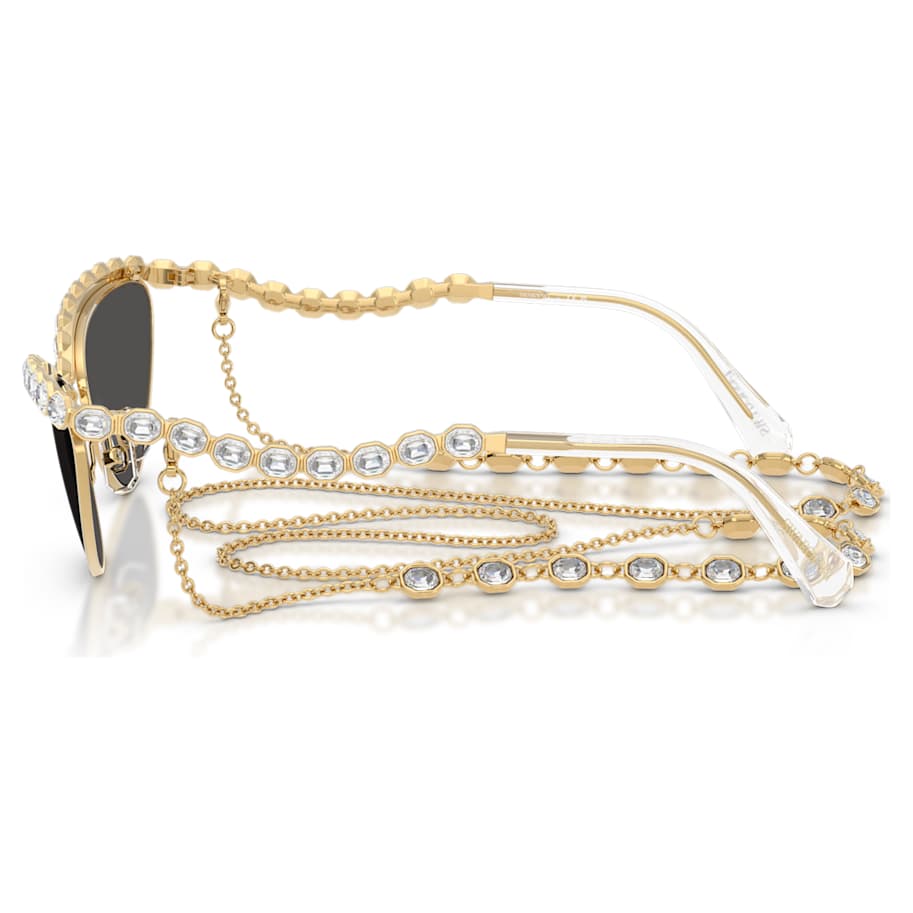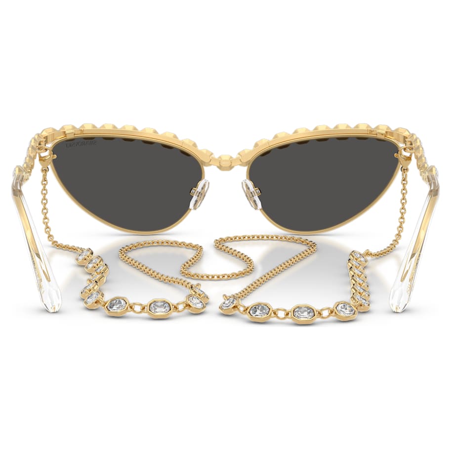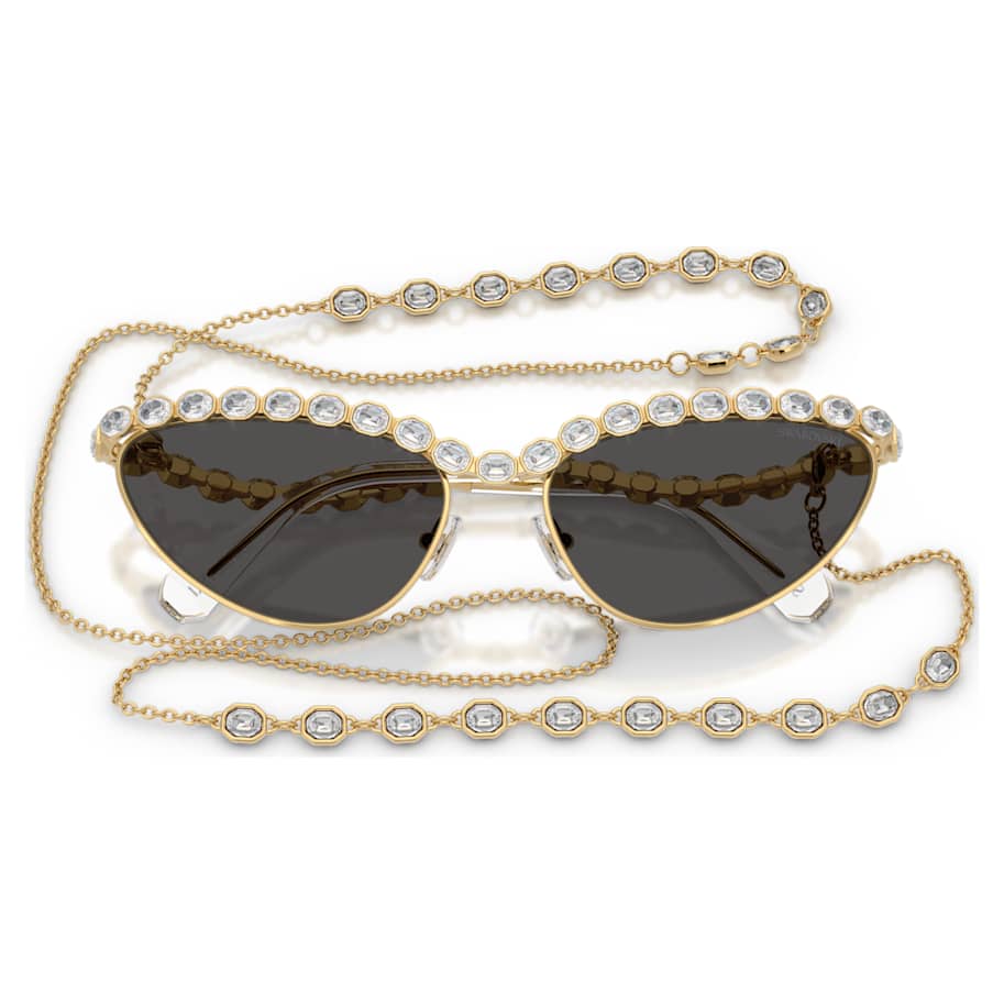 Take your eyewear to the next level with these head-turning Swarovski sunglasses. Inspired by the Millenia jewelry family, the cat-eye frames are enriched with dark grey lenses and clear octagon-cut crystals that are set along the eyebrow line and temples. A removable gold-tone chain is also included, allowing you to add even more crystals and extravagance to the look.