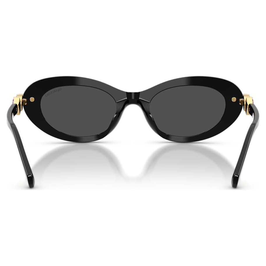 Combining classic black frames with multicolored crystals, these Gema-inspired sunglasses offer the perfect balance between subtle and vibrant. The oval-shaped design is crafted with dark gray lenses and features three crystals on each temple – all revealed in different shapes and candy colors. Match this pair of sunglasses with Swarovski’s Gema jewelry pieces to coordinate your look.