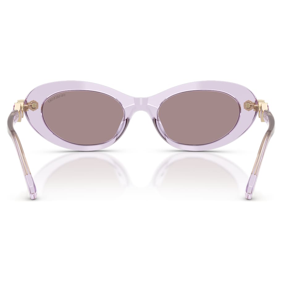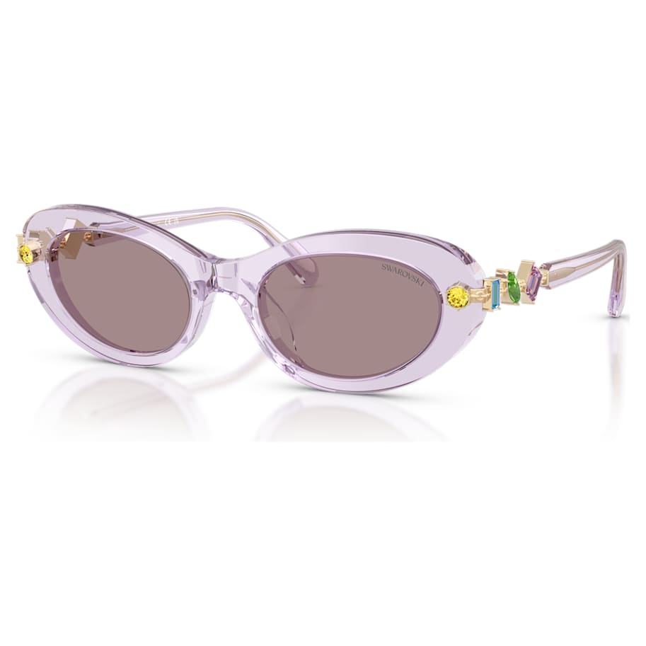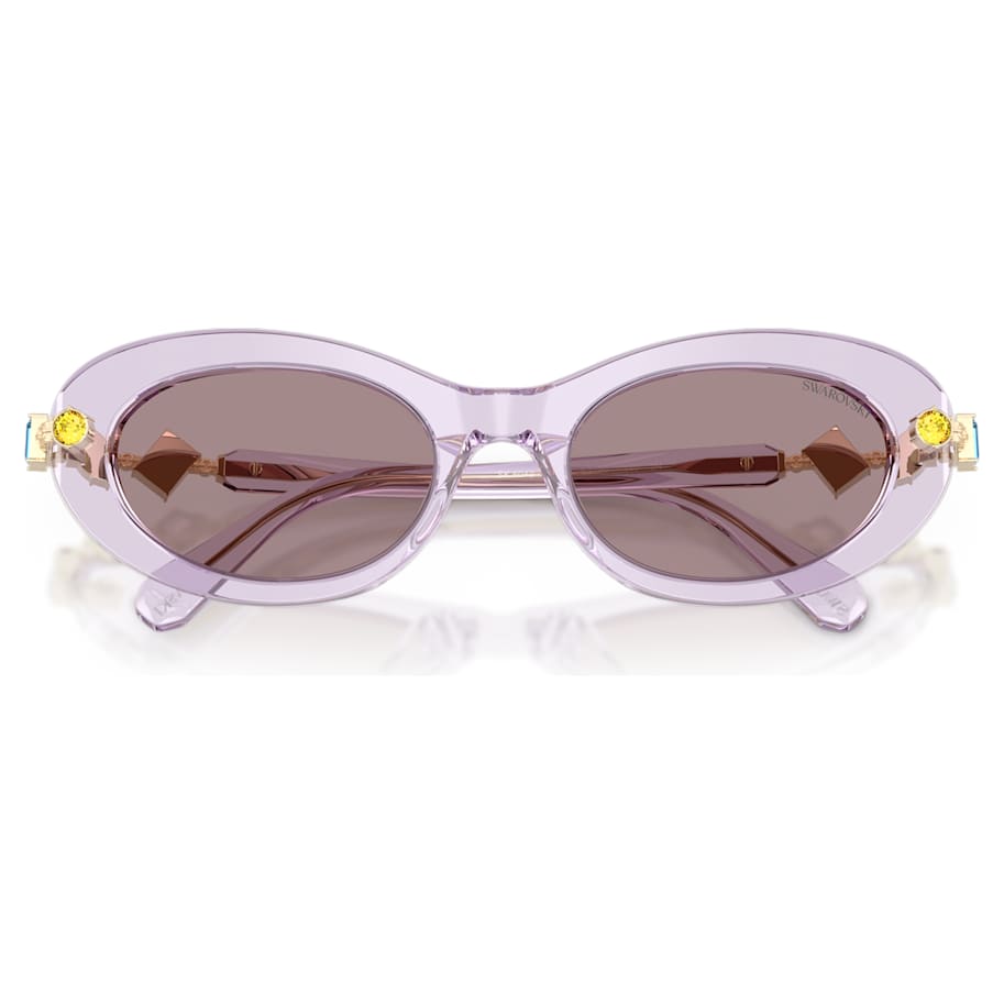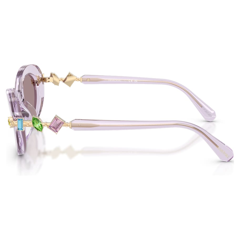 Combining lilac frames with multicolored crystals, these Gema-inspired sunglasses are the perfect choice for joyful expression. The oval-shaped design is crafted with purple lenses and features three crystals on each temple – all revealed in different shapes and candy colors. Match this pair of sunglasses with Swarovski’s Gema jewelry pieces to coordinate your look.