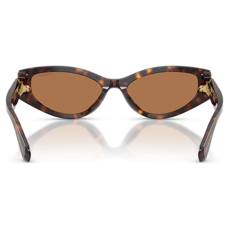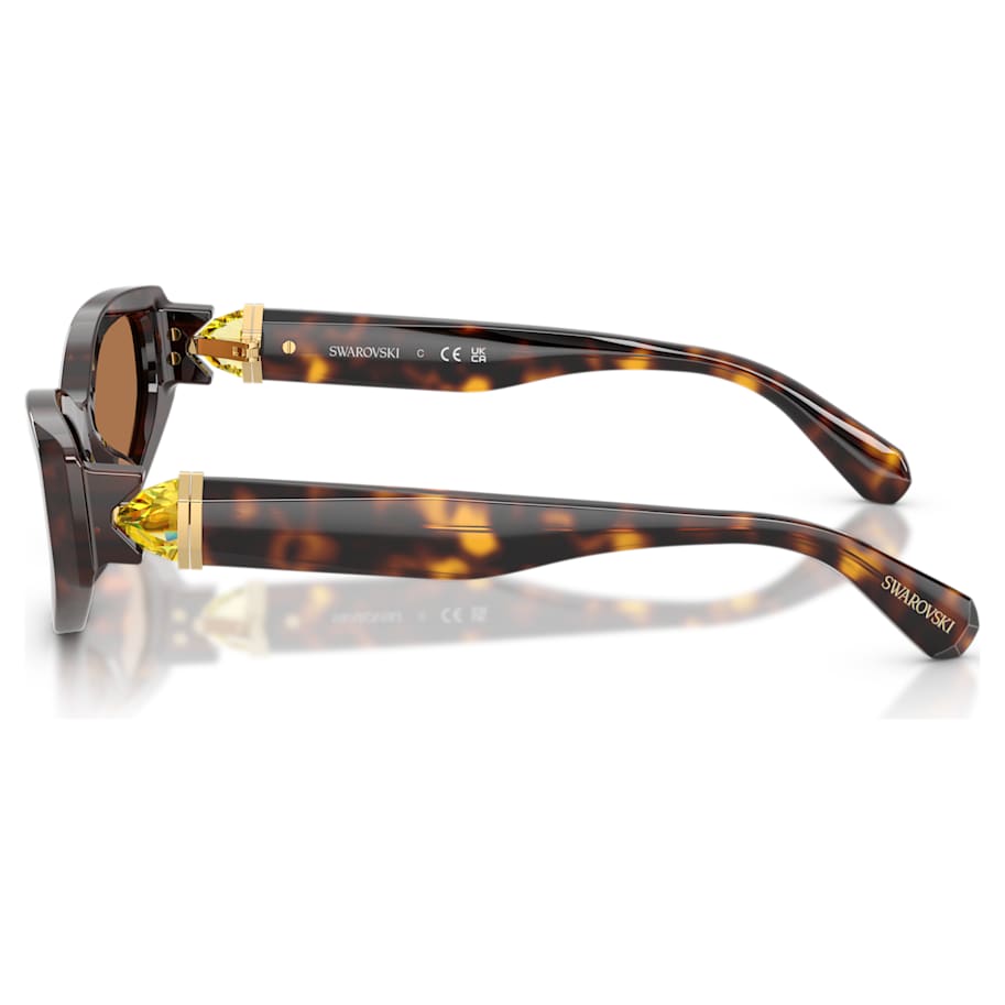 Celebrating the savoir-faire of Swarovski, these sunglasses are inspired by the exuberant Lucent jewelry family. The cat-eye frames are presented in a Havana brown color with dark brown lenses, while on each temple, the hinge is crafted from a faceted pear-shape crystal in Lucent’s signature yellow color. To coordinate your look, wear this glowing eyewear alongside the matching Lucent stud earrings.