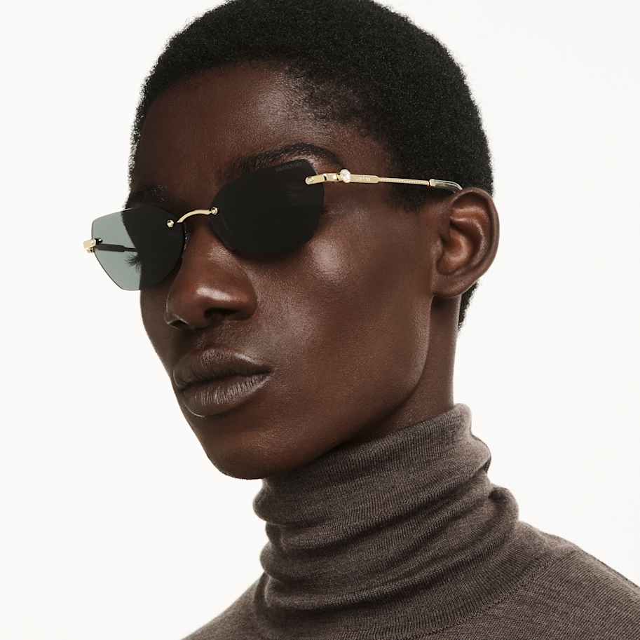 Refined yet expressive, these Swarovski sunglasses are inspired by the iconic style of the Millenia jewelry family. The frames are crafted in gold-tone metal and feature a clear crystal on each side in Swarovski’s signature octagon shape. Adding extra dimension to the design, the rimless lenses are formed in a pillow shape and are presented in a dark gray color for classic elegance.