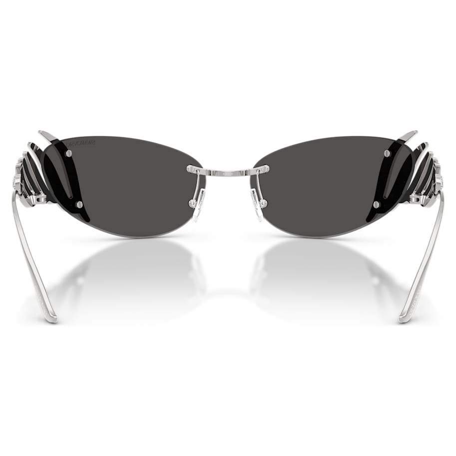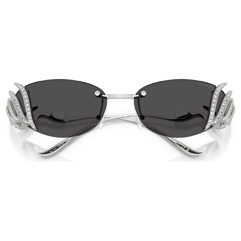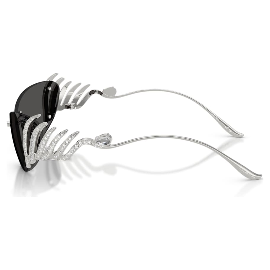 These sophisticated sunglasses are inspired by the Swan Vienna jewelry family, which reinterprets the graceful qualities of Swarovski’s iconic swan emblem. The metallic frames are crafted with feather-like strands on each temple, adorned in clear crystals of varying cuts and sizes. The rimless style is further enhanced by dark gray lenses in a classic cat-eye shape. Pair these sunglasses with the matching jewelry pieces to make an all-over statement of refinement and elegance.