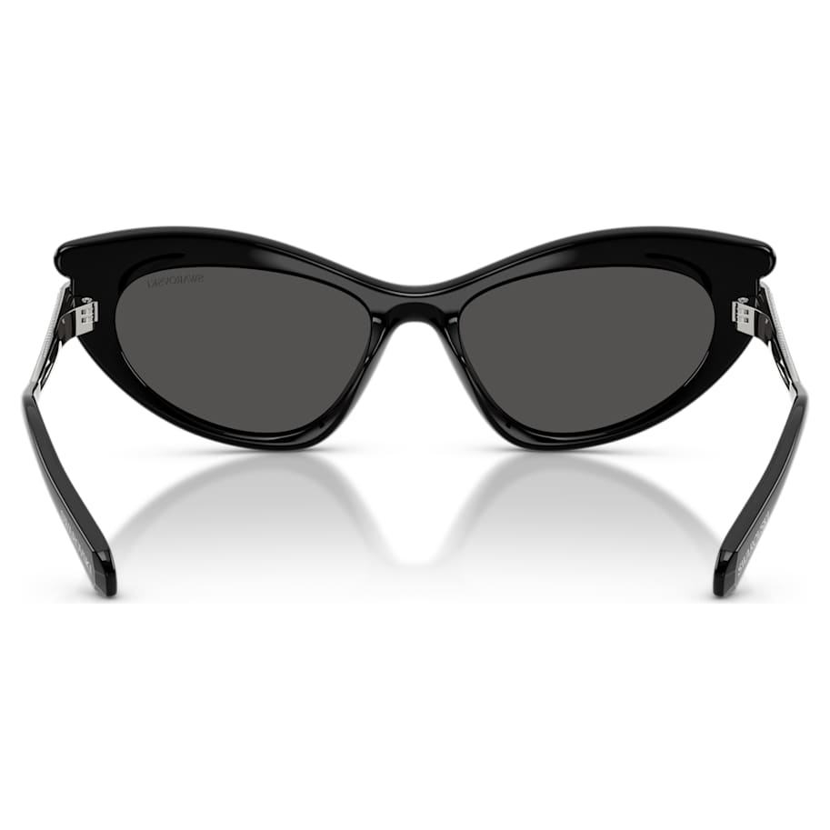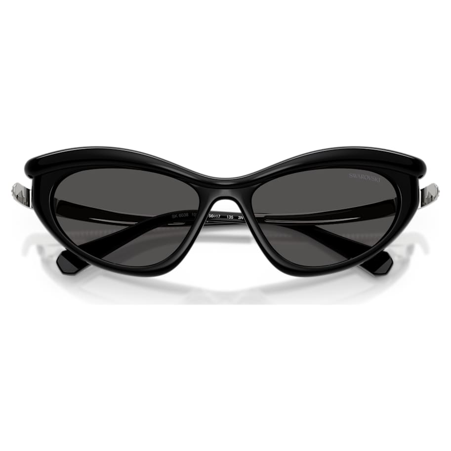 Futuristic and edgy, these statement sunglasses are inspired by the Sublima jewelry family. The expressive silhouette is defined by shiny black frames in a cat-eye shape, and metal temples that are enriched with radiant pavé. The dark grey lenses complete the modern look, giving you a shimmering way to accessorize with Swarovski savoir-faire.