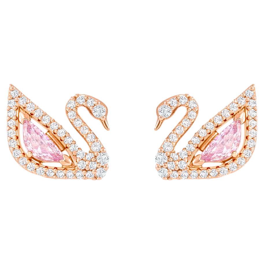 Enjoy multiple looks with this dazzling pair of versatile long-length pierced earrings. The iconic swan motif shines with a full-cut crystal body in cool millennial pink and crisp clear pavé lines. Wear as simple studs, or attach one, or both, of the delicate rose gold-plated chains for more statement style. A dainty design that will undoubtedly add cool and romantic style to your everyday collection. Matching items are available.