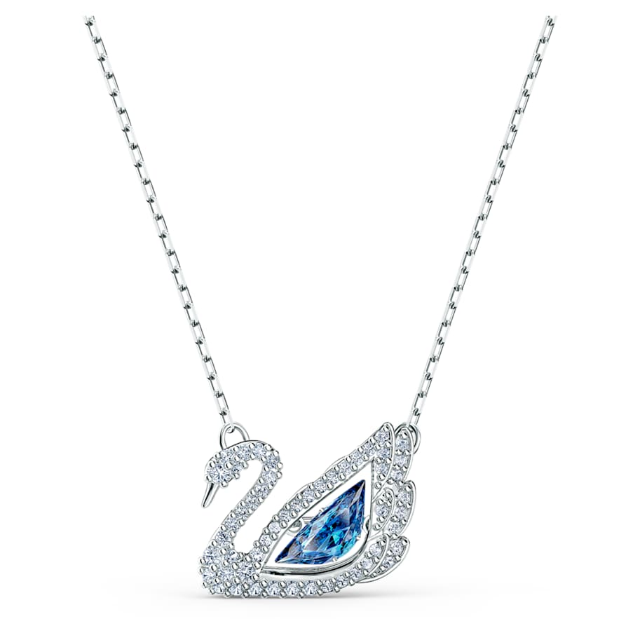 As a symbol of graceful elegance and nobility, the swan is the ideal icon for Swarovski jewelry. This beautiful necklace condenses over 125 years of artisanal and designing experience into a beautiful swan set with numerous sparkling Swarovski stones. The deep blue central element with the 'dancing stone' mechanism reminds you of clear lakes shimmering in the sun. The perfect match for a sophisticated evening ensemble.