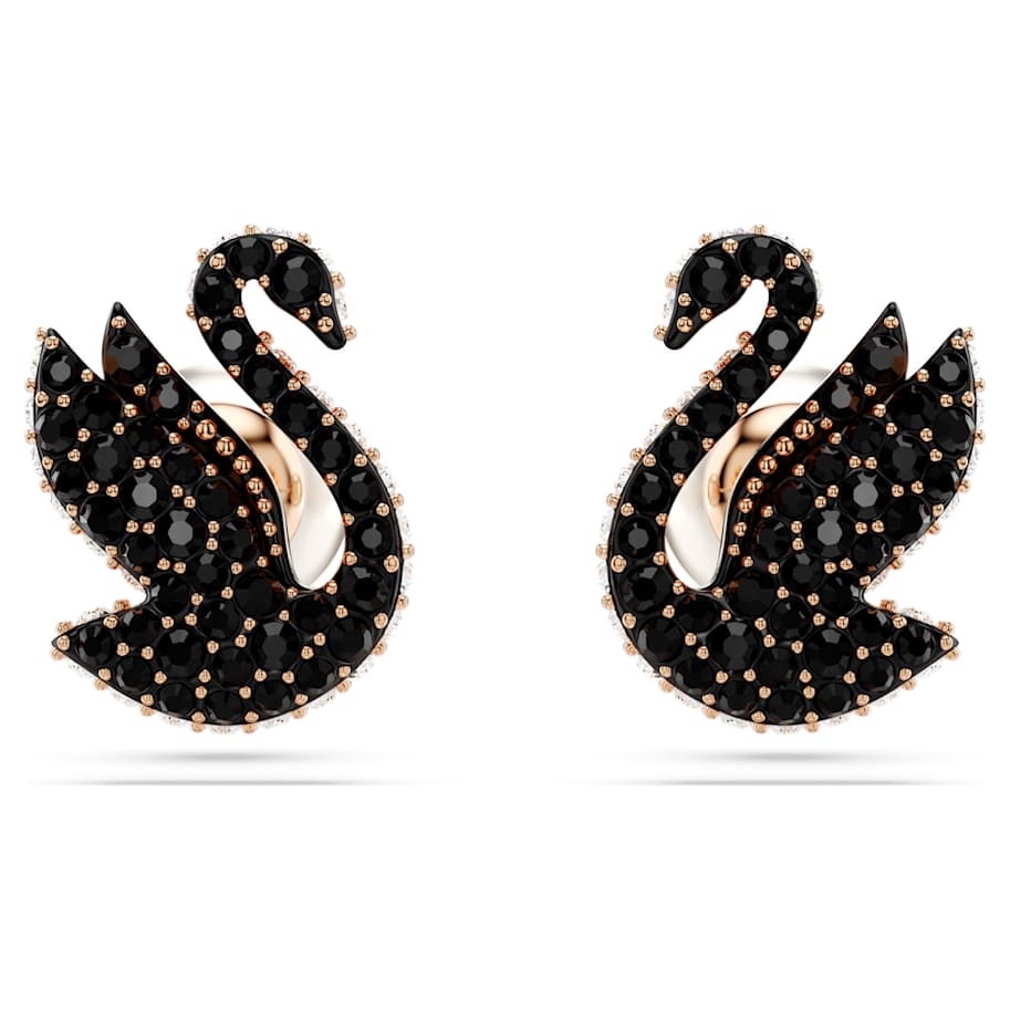 Inspired by the signature emblem of Swarovski, these elegant earrings reveal a swan preparing to take flight. Each rose gold-tone plated piece features a single Crystal Pearl closure, along with a swan motif, expertly decorated with a pavé of jet black Swarovski ReCreated™ crystals. These sophisticated earrings can be worn alone or paired with a matching pendant for maximum glamour.