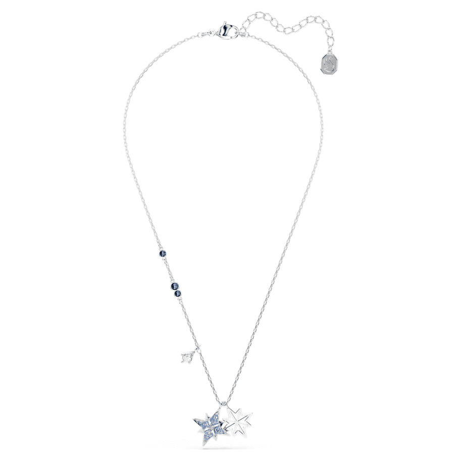 This cool and classic pendant is inspired by the shining night sky. Featuring star motifs, which symbolize hopes and dreams, the rhodium plated design dazzles with blue Swarovski Zirconia in a stunning kite-shaped cut. A perfect accessory by day or night, and an original gift idea.