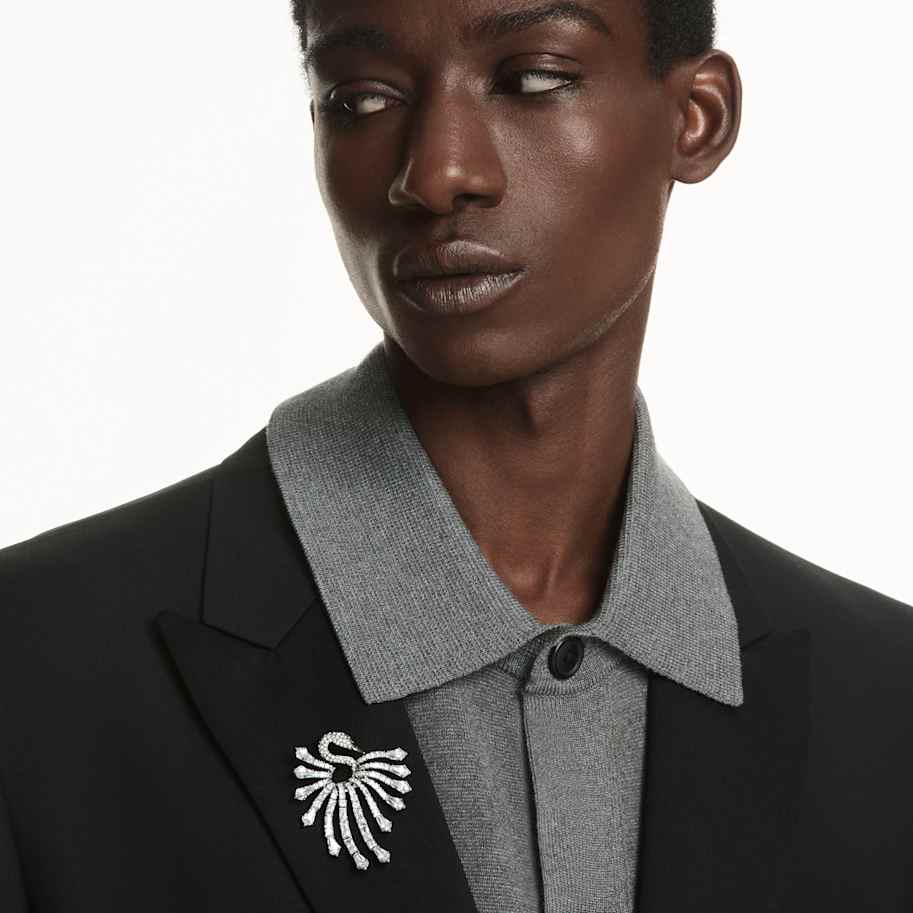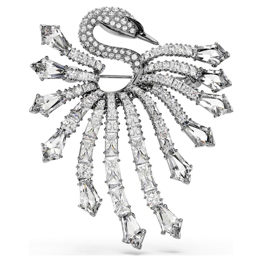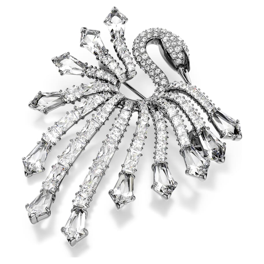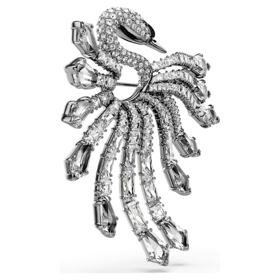 The Vienna Collection celebrates 130 years of creativity and savoir-faire at Swarovski. Honoring that heritage, this ruthenium plated brooch is inspired by the graceful neck and body of a swan. The design is decorated in clear crystals and Swarovski Zirconia, with feather-like strands that spread outward for a dramatic effect. A beautiful statement piece to convey sophistication, this brooch is a wondrous tribute to Swarovski’s iconic mastery of light. Wear it together with the matching ear cuff to maximize the bold effect.