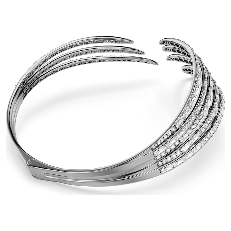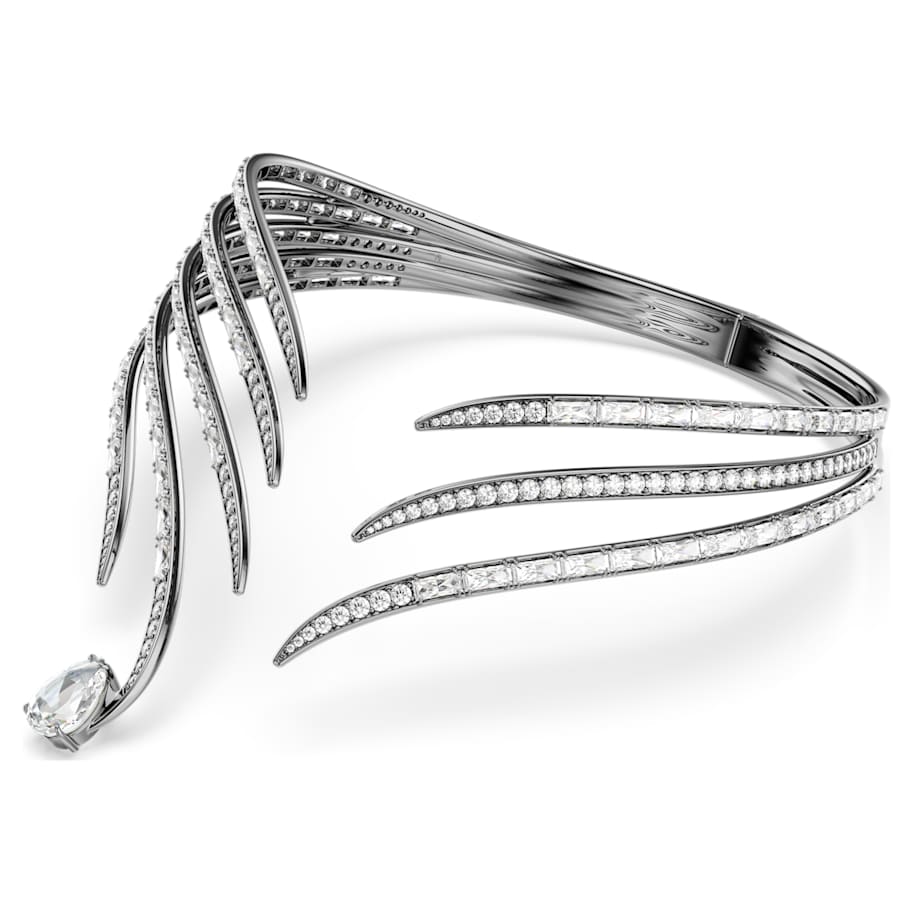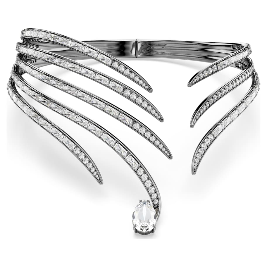 The Vienna Collection celebrates 130 years of creativity and savoir-faire at Swarovski. Honoring that heritage, this ruthenium plated choker is inspired by the graceful wings of the emblematic swan. Each strand is adorned in various cuts of crystals and Swarovski Zirconia, with a single pear-shape crystal at the tip for extra radiance. A beautiful statement piece to convey sophistication, this choker is a wondrous tribute to Swarovski’s iconic mastery of light. Wear it together with the matching bangle to maximize the bold effect.
