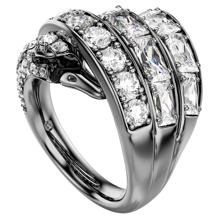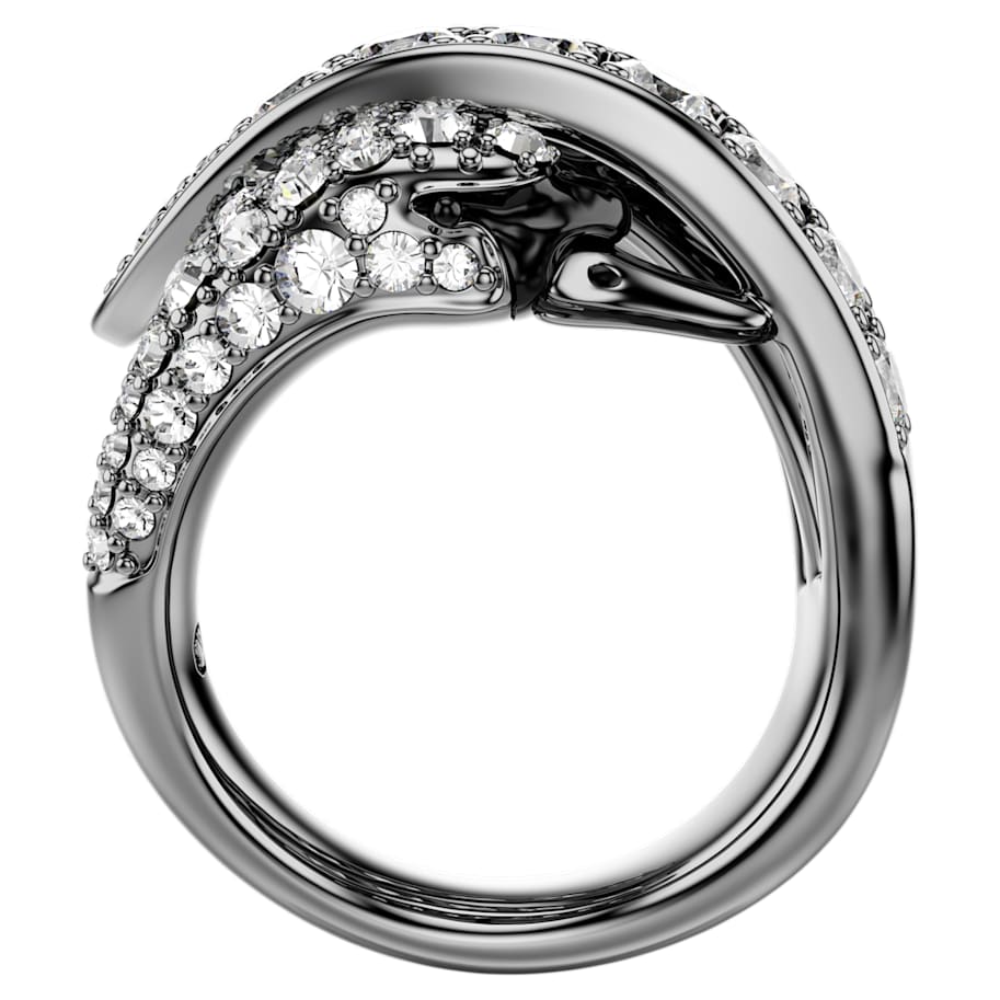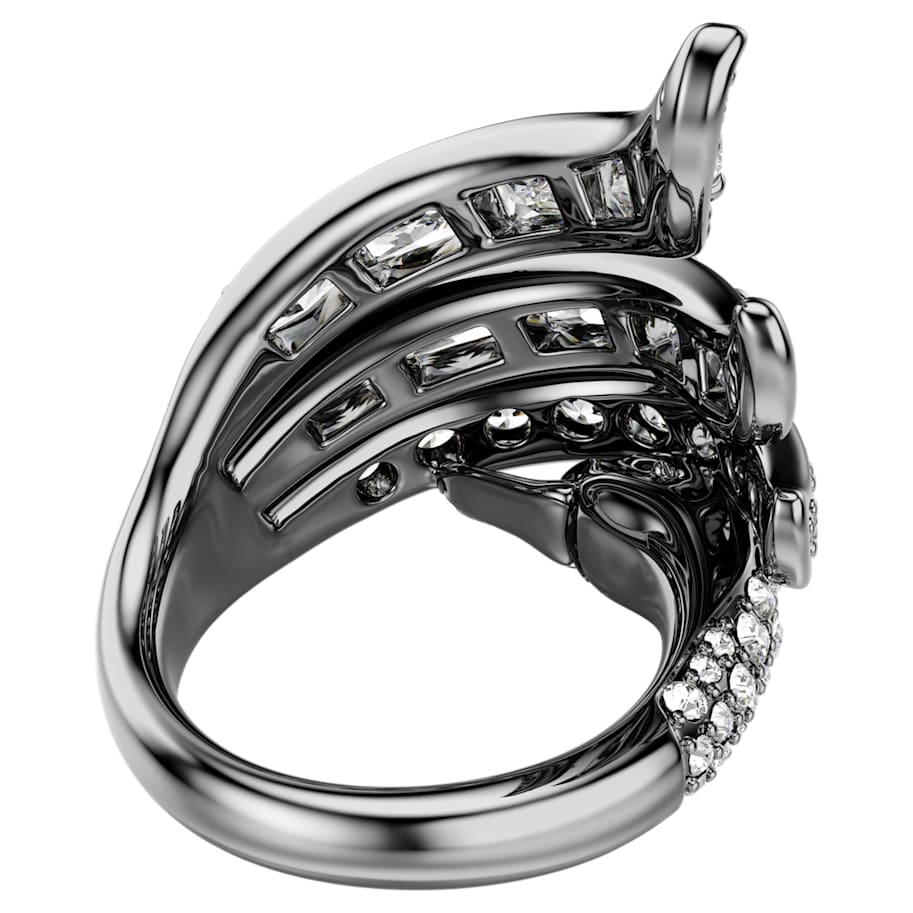 The Vienna Collection celebrates 130 years of creativity and savoir-faire at Swarovski. Honoring that heritage, this ruthenium plated ring is inspired by the graceful body of a swan. The design is decorated in clear crystals and Swarovski Zirconia, with the swan’s head and neck wrapping around the finger along with dramatic feather-like strands. Conveying a beautiful sense of movement and sophistication, this ring is a wondrous tribute to Swarovski’s iconic mastery of light. Wear it together with the matching ear cuff to maximize the bold effect.