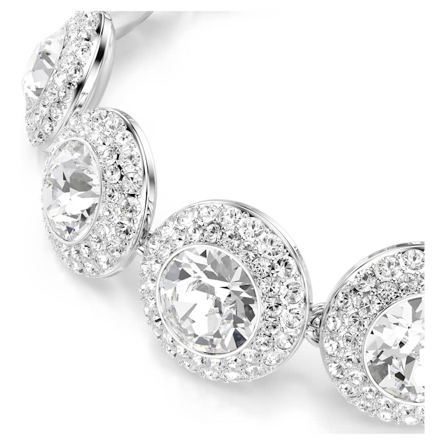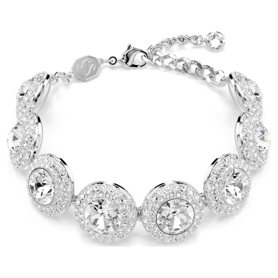 Surround your wrist in the light-catching wonder of this Swarovski bracelet. The rhodium plated chain features a lobster closure and is adorned with a row of meaningful angel motifs. Mix and match with other Una Angelic pieces for a look of ultimate radiance.