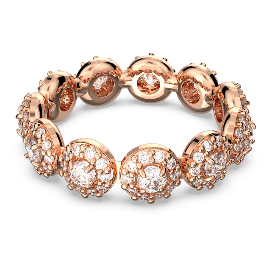 Channel elegance with this rose gold-tone plated ring from the Una family. Inspired by fine jewelry techniques, this sophisticated design shines bright like the stars with round-cut stones and eye-catching pavé embellishment. Why not gift to yourself or a loved one?