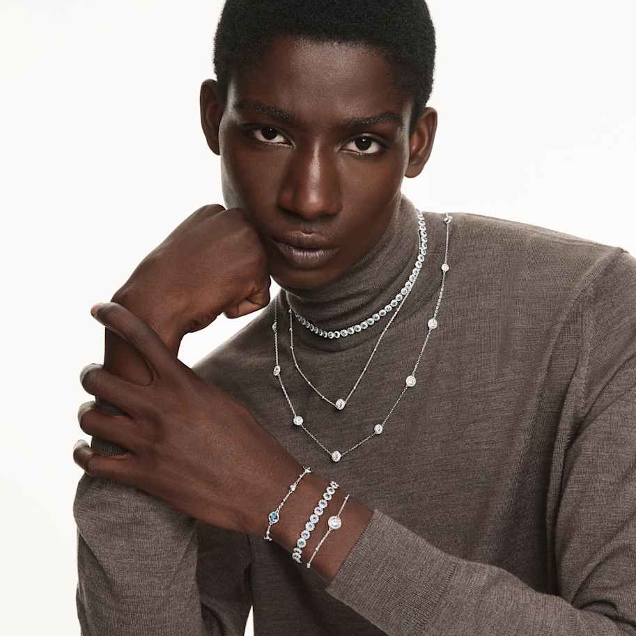 This versatile strandage lets you play with your style. Perfect for layering, the long rhodium plated chain is accented with glittering double-sided motifs. Simply reverse the jewelry to showcase a different display of round-cut crystals. Mix and match with other Una Angelic pieces for a look of ultimate radiance.