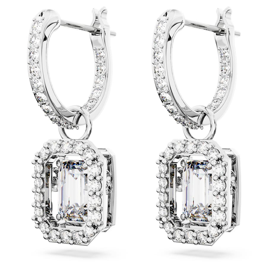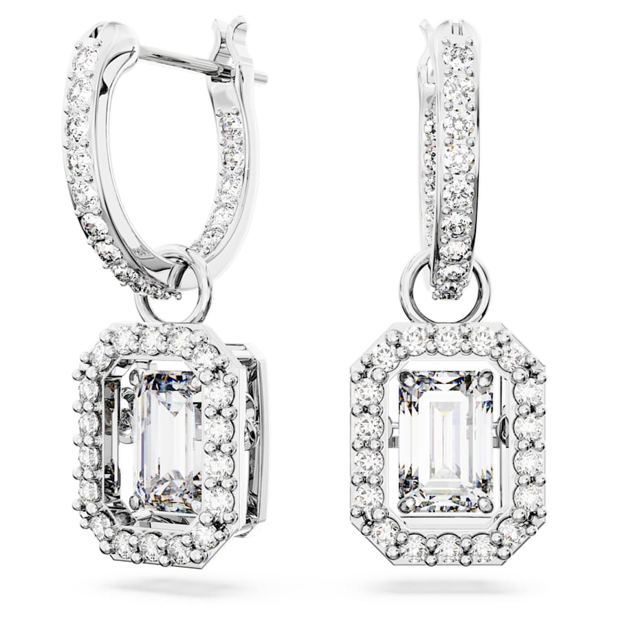 Elevate your everyday wardrobe with these exquisite drop earrings from the Una family. Made for pierced ears, this rhodium plated pair showcases octagon-cut dancing stones that are elegantly framed by pavé crystals. The versatile clear colorway makes them ready to be worn solo or paired with other colorful jewels for a curated finish.