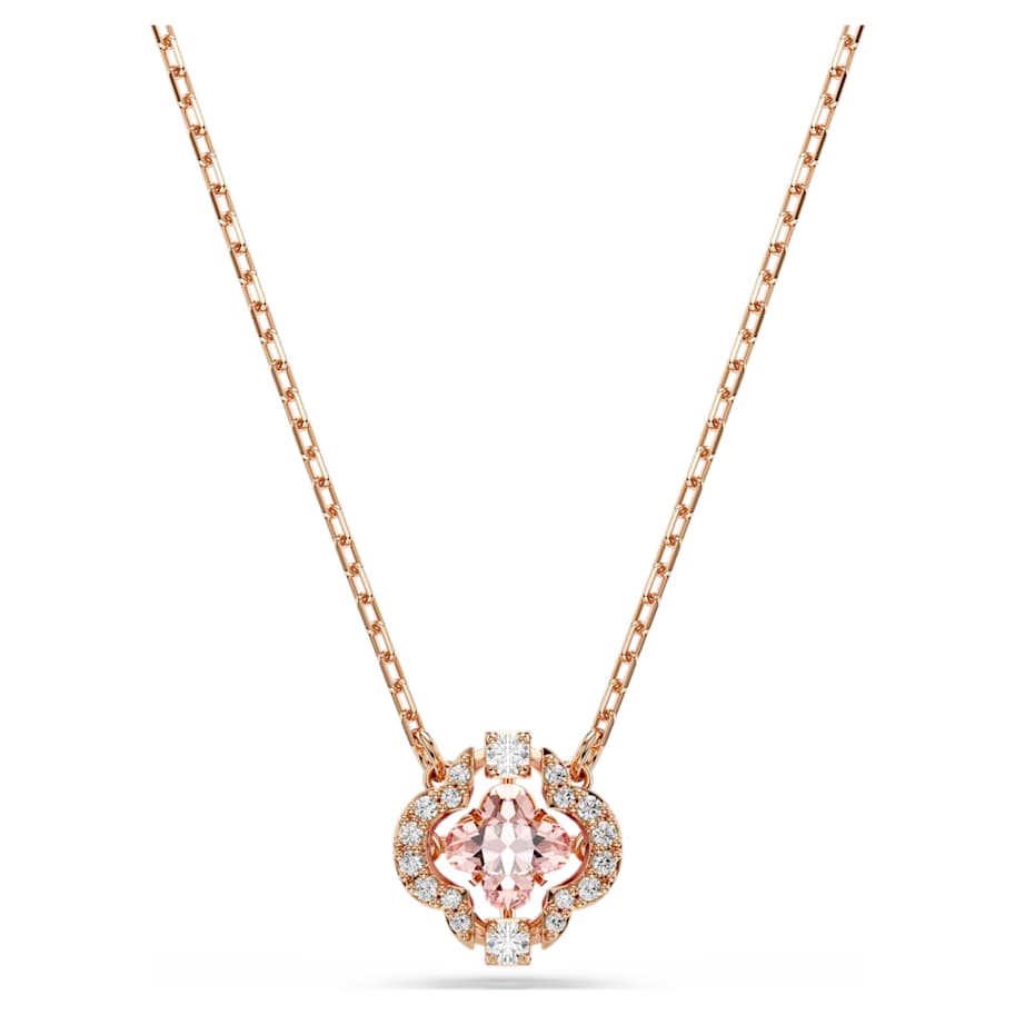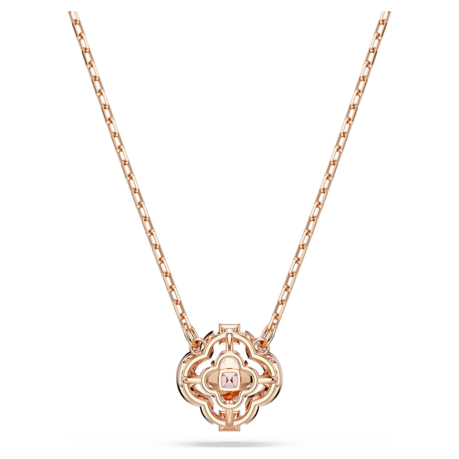 This Una necklace sparkles with a charming floral design. From our much-loved Sparkling Dance collection, it features a pink dancing stone in the shape of a clover, which appears to float inside its setting and is complemented by the rose-gold tone plated chain. This piece of jewelry will pair well with casual outfits and is a great gift for a special someone.