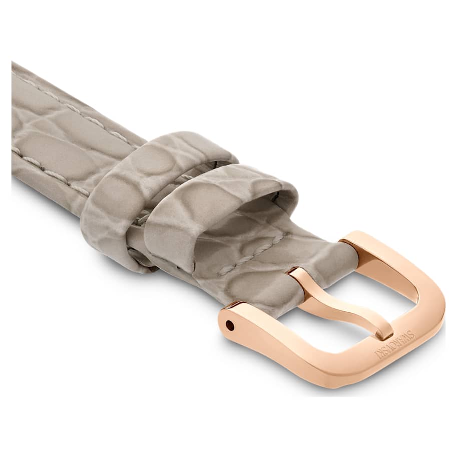 This genuine calf-skin Italian beige leather strap by Swarovski adds glamorous style to your watch. The strap features an embossed lizard pattern, a buckle with a rose gold-tone finish, and a quick-release spring bar allowing for an easy fit. It is 16mm wide and 16cm long and compatible with Crystalline Wonder watches.