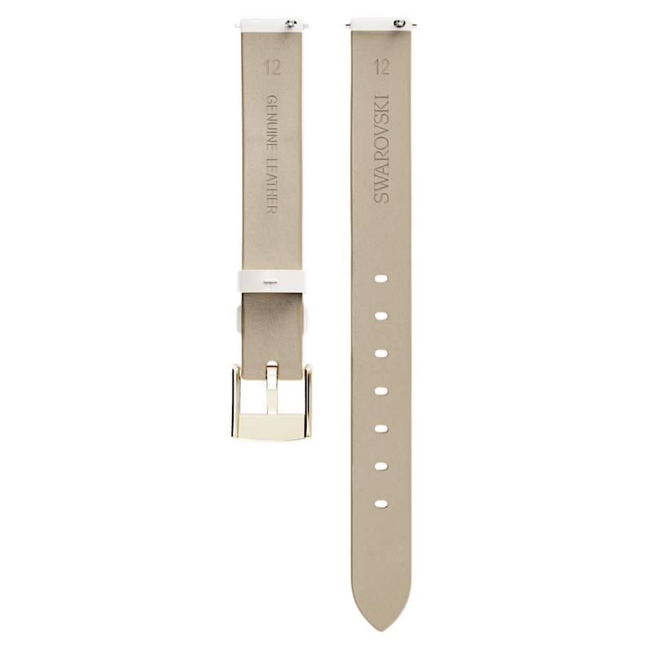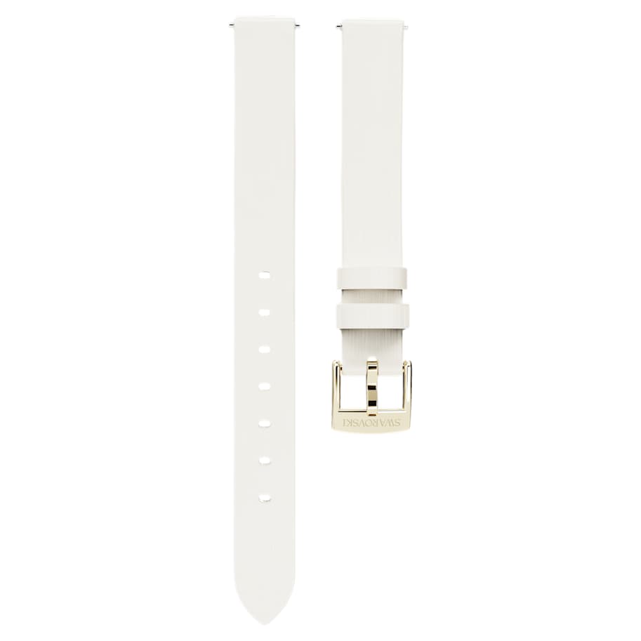 This Italian calf-skin white leather strap by Swarovski adds glamorous style to your watch. The smooth strap features a satin finish on top, a stainless steel buckle with a champagne gold-tone finish, and a quick-release spring bar allowing for an easy fit to your Swarovski watch. It is ideal for our Certa family, and other watches that are compatible with a 12-mm strap width.