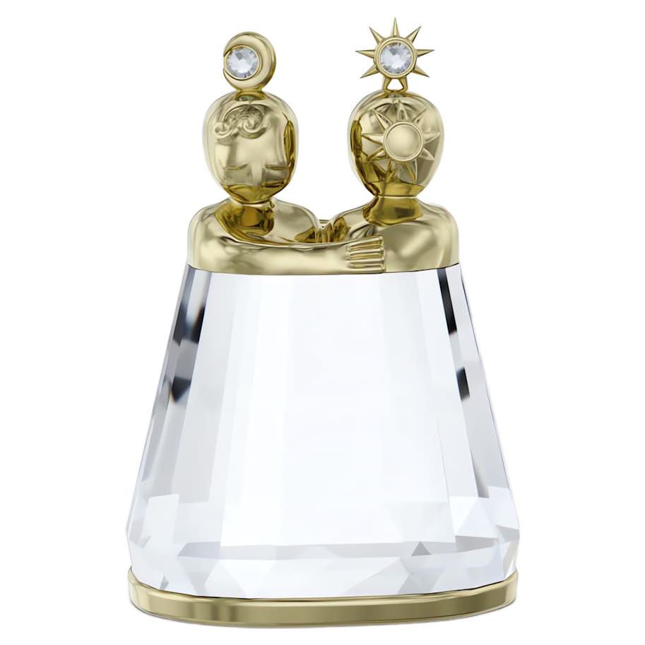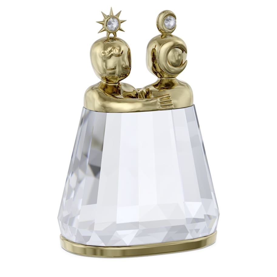 Taking notes from the cosmos, this distinctive Gemini figurine is a wondrous tribute to the zodiac. The astrological design combines precision cutting with engraved gold-tone metal, featuring 62 facets that represent two twins alongside the moon and sun. Gift this special piece to yourself or someone who is celebrating their birthday. Decoration object. Not a toy. Not suitable for children under 15.